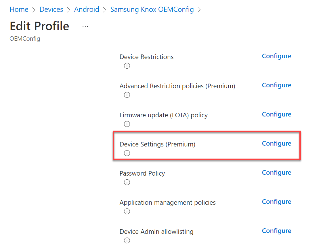 And scroll down to the Device Settings (Premium) and click Configure